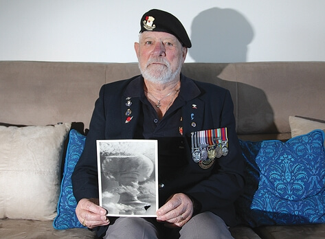 Neil Balloch was “lucky”. He was given darkened glasses to wear when the nuclear bomb went off. Others had to watch it with just their hands over their eyes, seeing the bones in their hands light up like an x-ray machine.