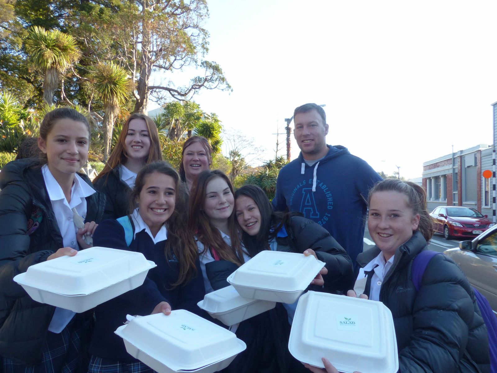 A queue formed in front of Crusader Wyatt Crockett as he helped to hand over thirty free salads to passersby this afternoon.