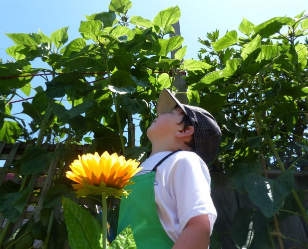Grove Street Kindergarten’s Charlie Heathfeild-Offen grew a winning sunflower, three times his size.