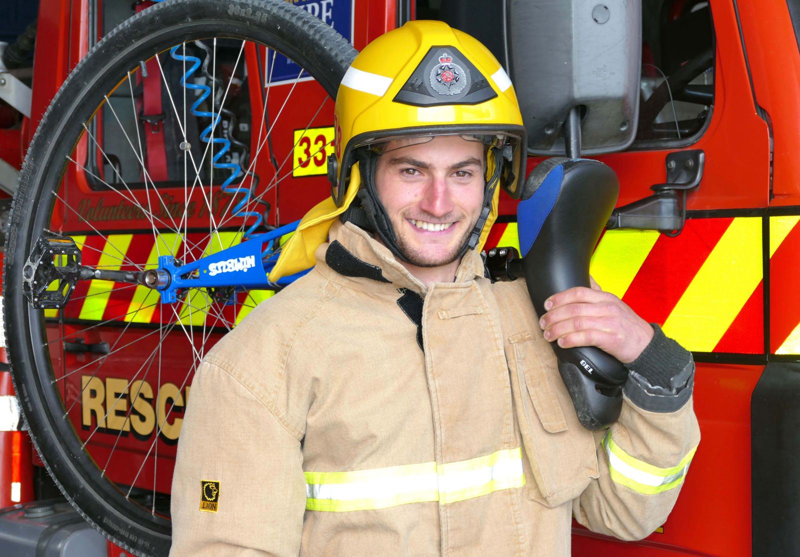 A volunteer fire fighter is preparing to ride the gruelling 106km Rainbow Rage mountainbiking race on just one wheel.