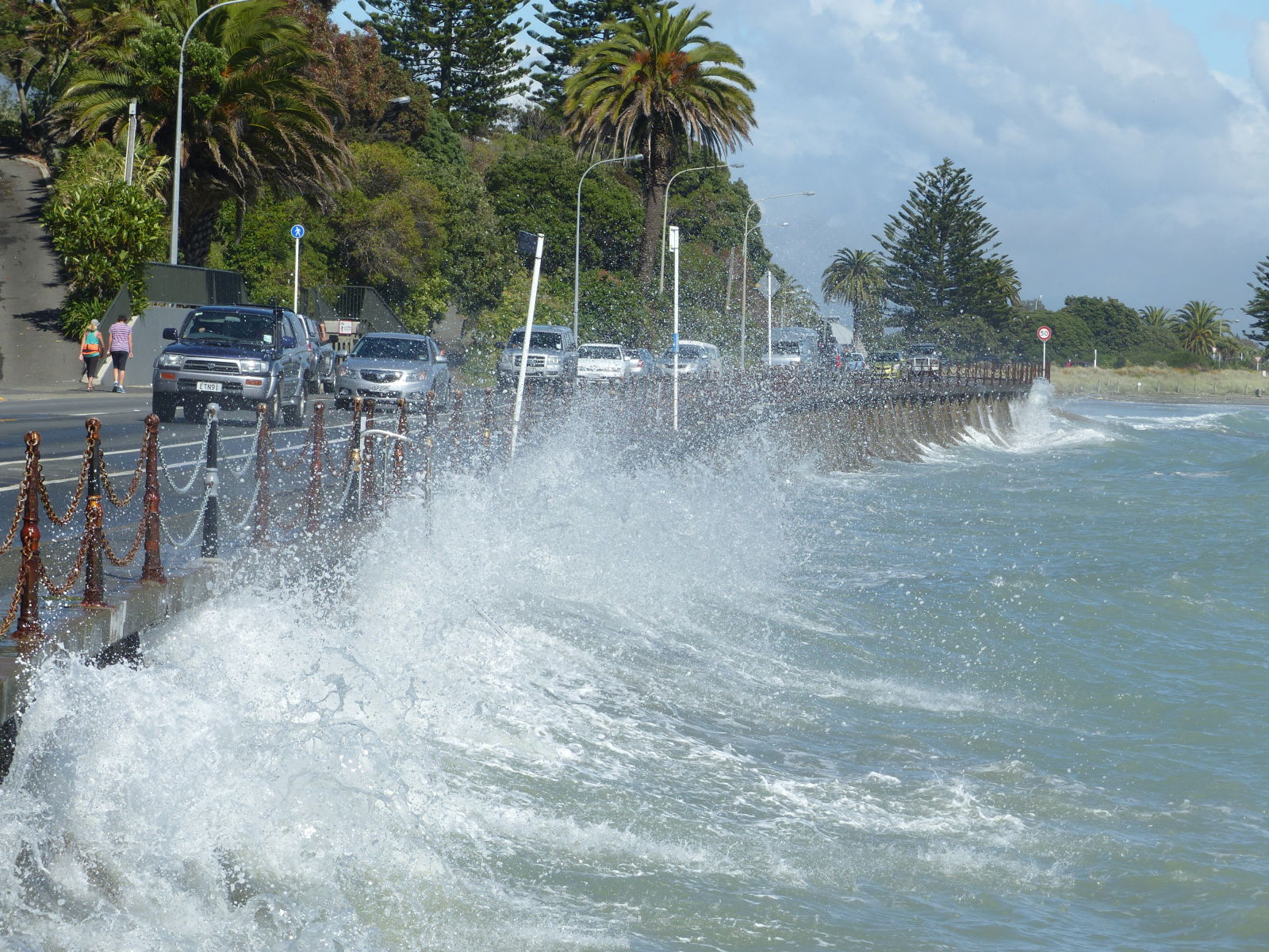 Water was covering the entire road in certain areas while the sea side lane was soaked the length of the road.