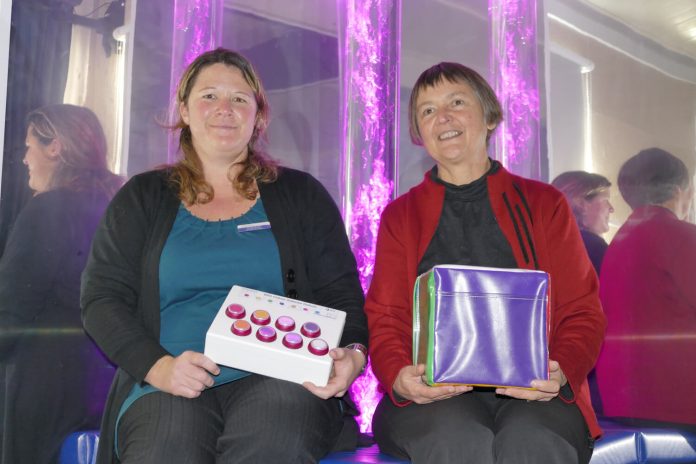 The school’s occupational therapist Emily Smith will be showing staff how to use the room which includes a massage chair, colourful bubble tube, audio-visual equipment and ultra-violet light dark-room. All the equipment can be controlled by the students using simple, colour-coded remote controls.