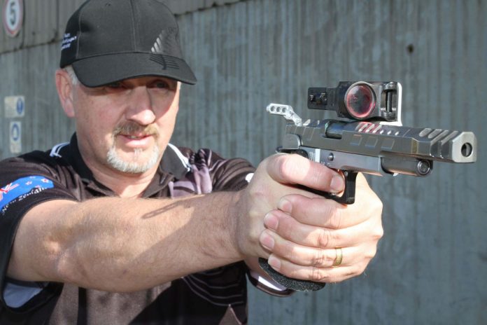 Brian is competing in the open class and, along with one other person, was part of the four-member team that came third in the last Australasian IPSC Hand Gun Championships.