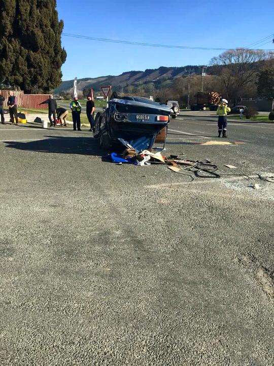 The car, which was on the Wakefield/Kohatu Highway, was turning left onto Motueka Valley Highway when a medium sized truck coming from behind collided with the vehicle, the impact causing the car to flip onto its roof.