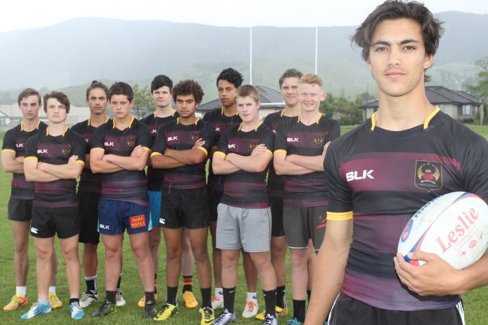 Garin College sevens captain, Matthew Stevenson (front) will lead the school to the Condor 7s national secondary schools tournament for the first time in Auckland on Friday. Photo Jacob Page