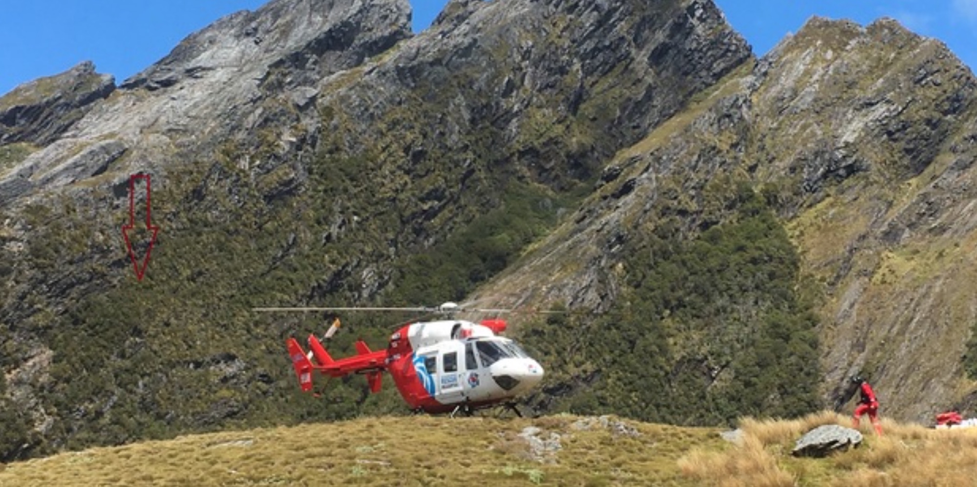 The arrow shows where the woman was picked up after she fell on the Dragons Teeth cliff face. PHOTO/Nelson Marlborough Rescue Helicopter.