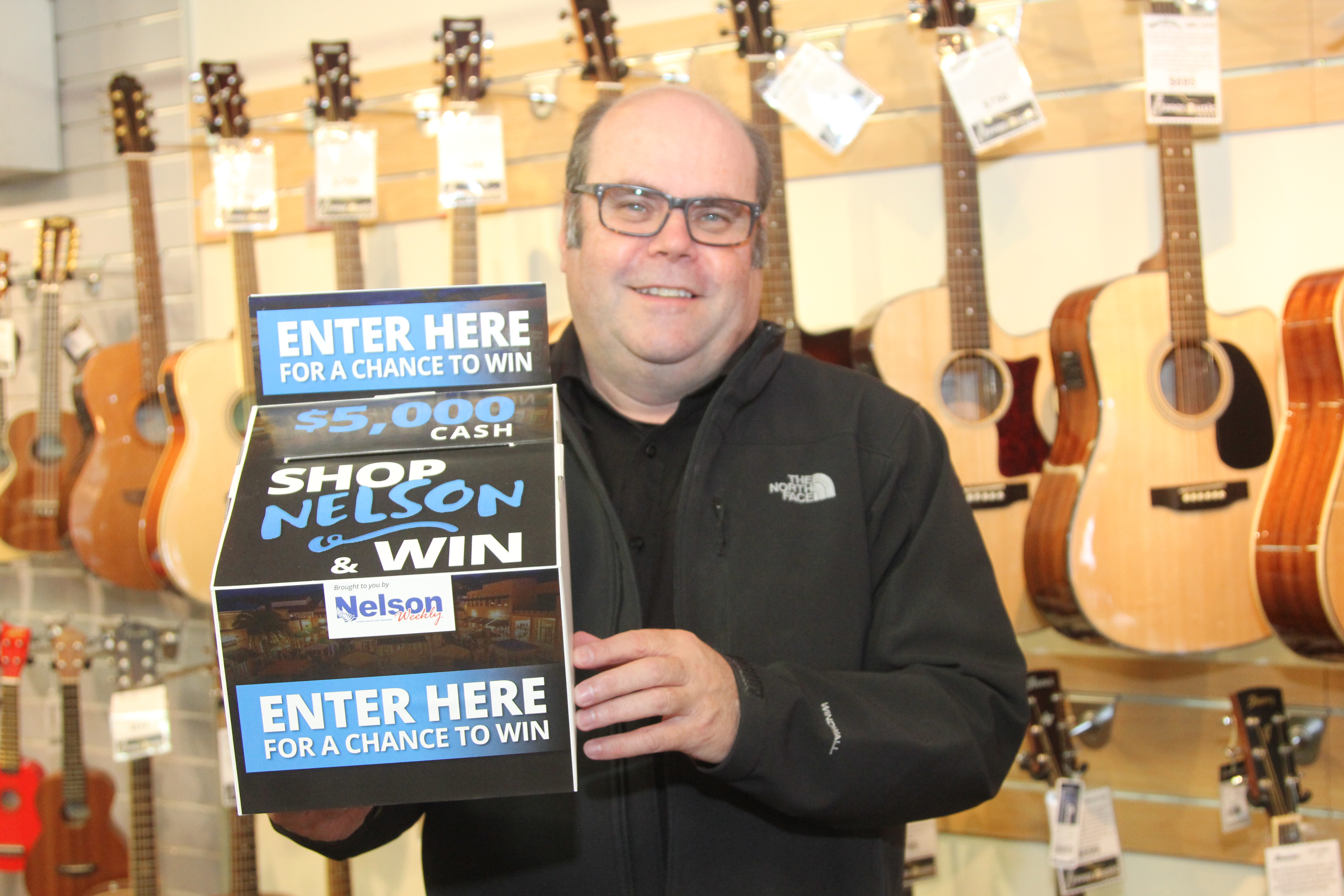 Tim Babbage of Beggs Music Works is one of the fifty Nelson businesses taking part in Shop Nelson and Win, which will see one lucky shopper take home $5000 cash. Photo: Jessie Johnston.