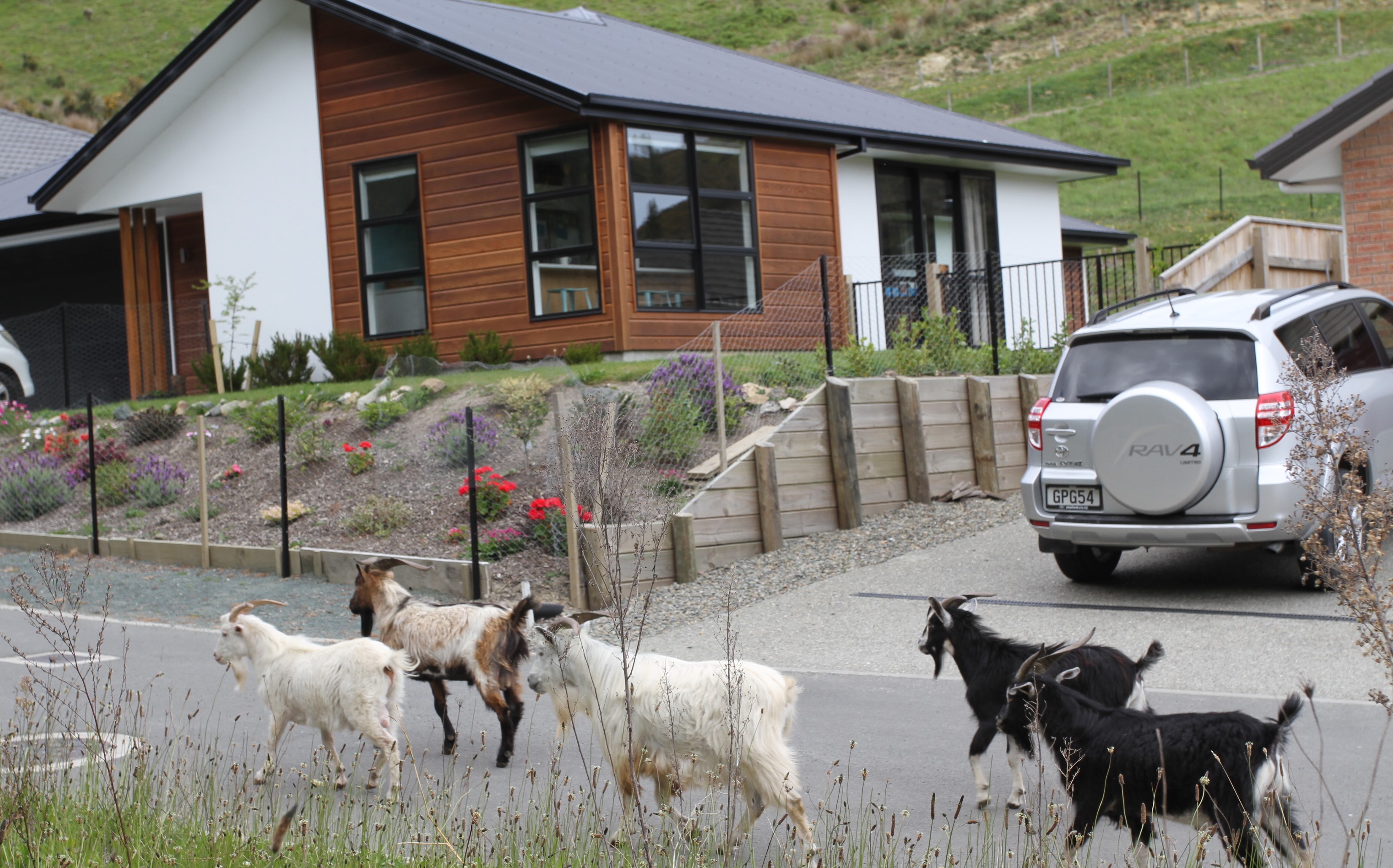 A gang of about 20 goats had been jumping into properties and destroying gardens. The goats would regularly trot down the road.
