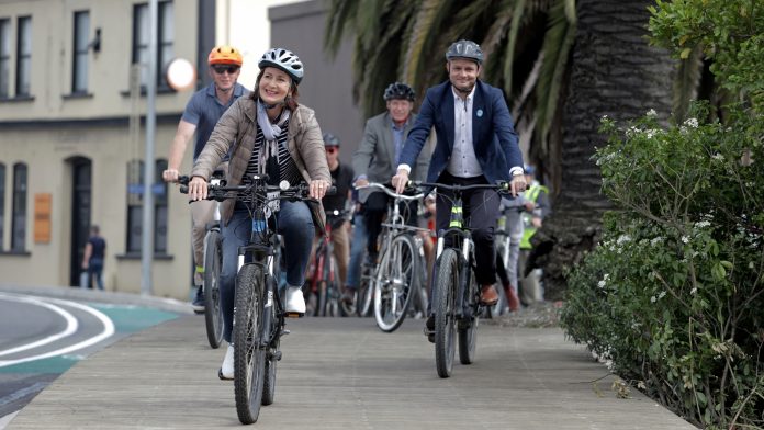 Mayor Rachel Reese and Minister for Climate Change Issues James Shaw at the opening of the Maitai to Rocks Rd shared pathway. Photo: Supplied.