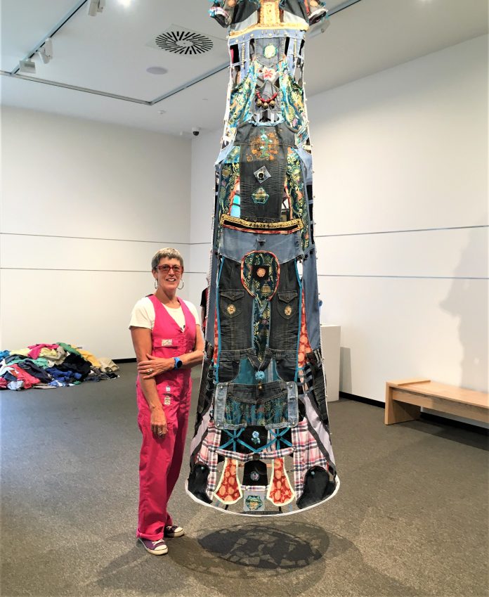 Maggy is in attendance at the exhibition every day until November 23, working her way through a mountain of discarded clothing which would otherwise be thrown into landfill.