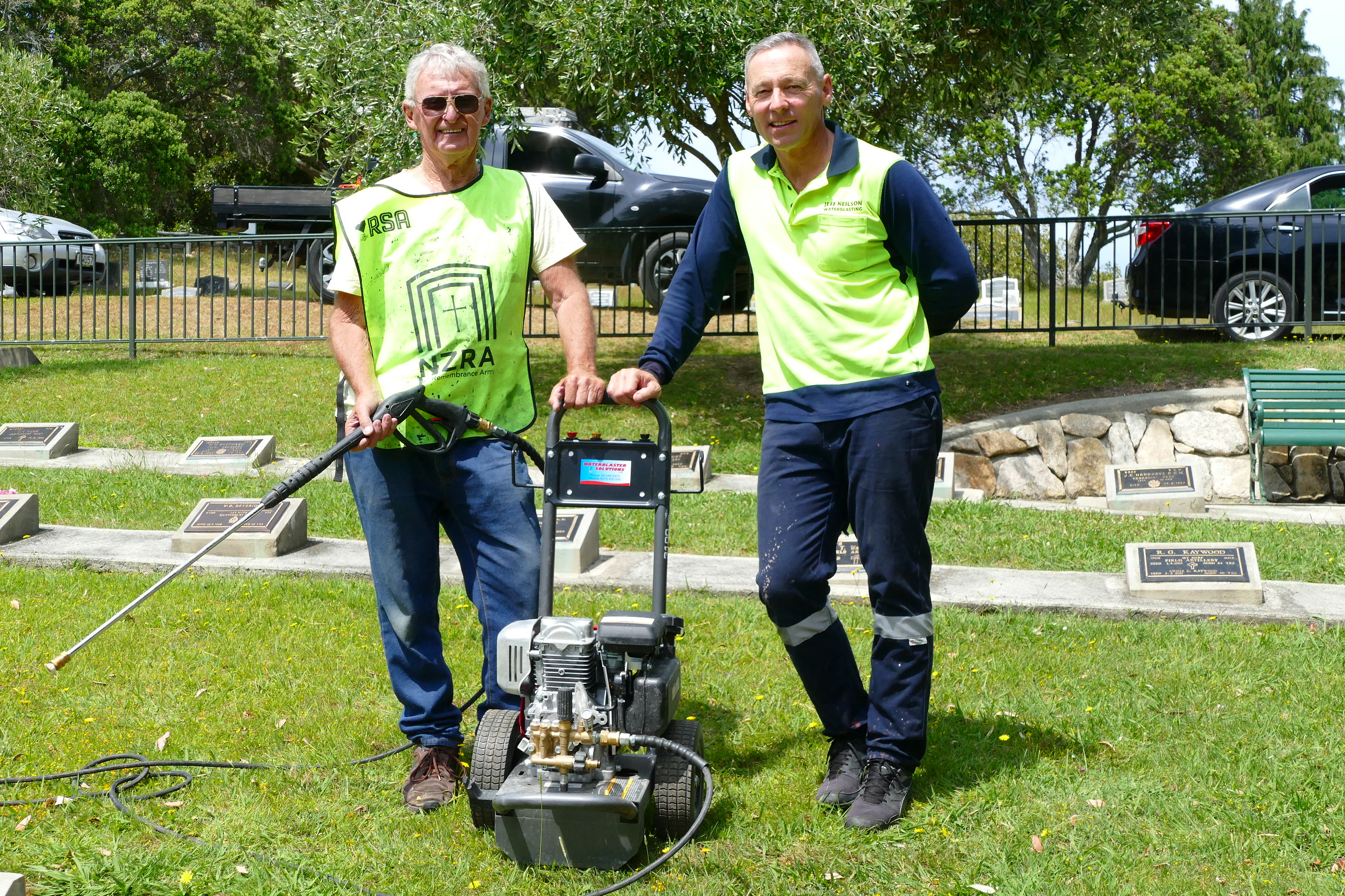 The team quickly realised that this was a short-term solution due to the size of the cemetery, and Grant and Jeff agreed that the Brian and his team would benefit from having their own water blaster.