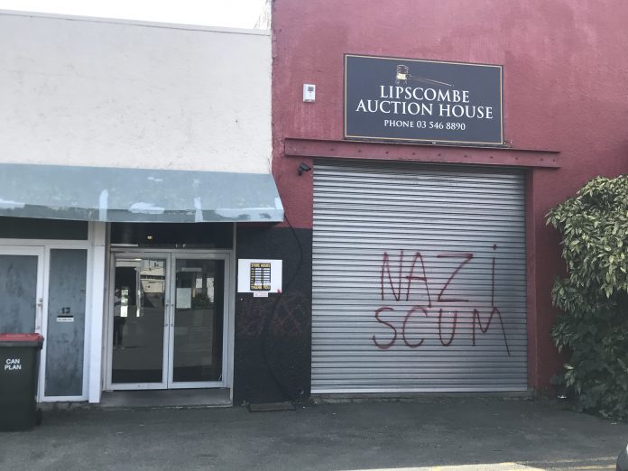 Over the weekend police responded to a complaint of vandalism after the words ‘Nazi Scum’ were written on the auction house’s door.